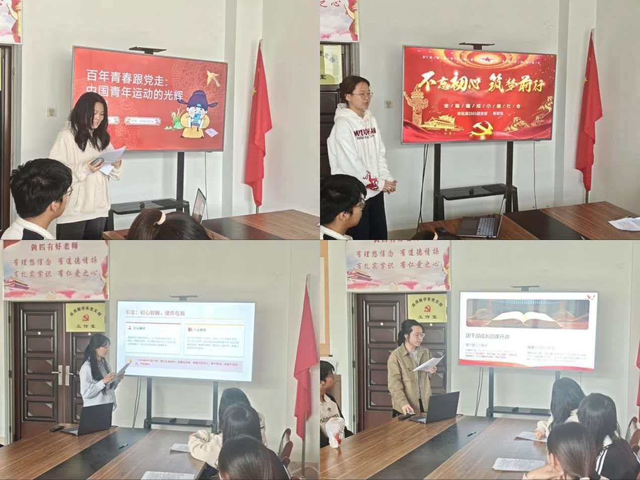 物理2501郝奇买、物理2402徐子越聚焦党的青年运动史梳理历史脉络,信息2501于舒淇解读“一个中心、两个基本点”核心内涵,新能源2401杨梦蕊阐述了参与榆林定边治沙实践活动的感悟,新能源2501陈羿羽号召青年践行初心使命,信息2502郭晨阳强调基础团务规范落实的重要性,选手们以饱满热情展现了学生团干部的青春风采与责任担当。
